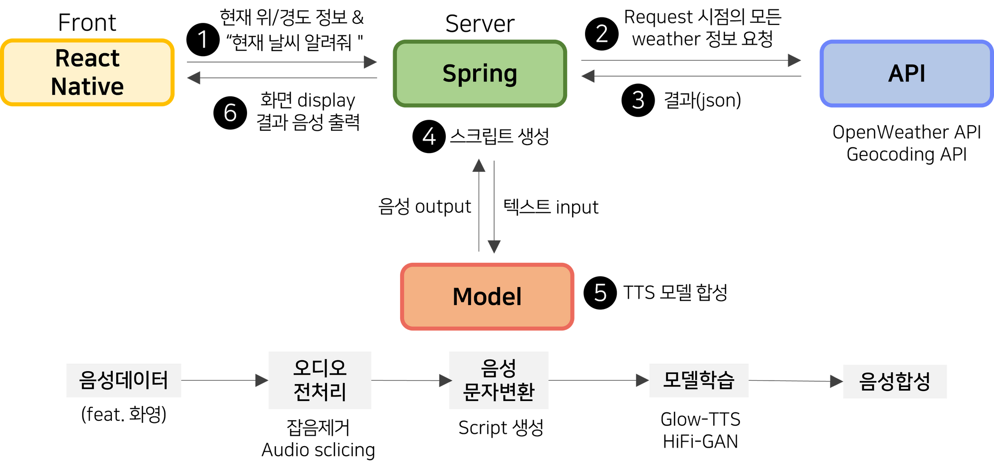 - 프론트에서는 사용자의 현재 위치와 음성으로 된 질문을 서버에 전달
