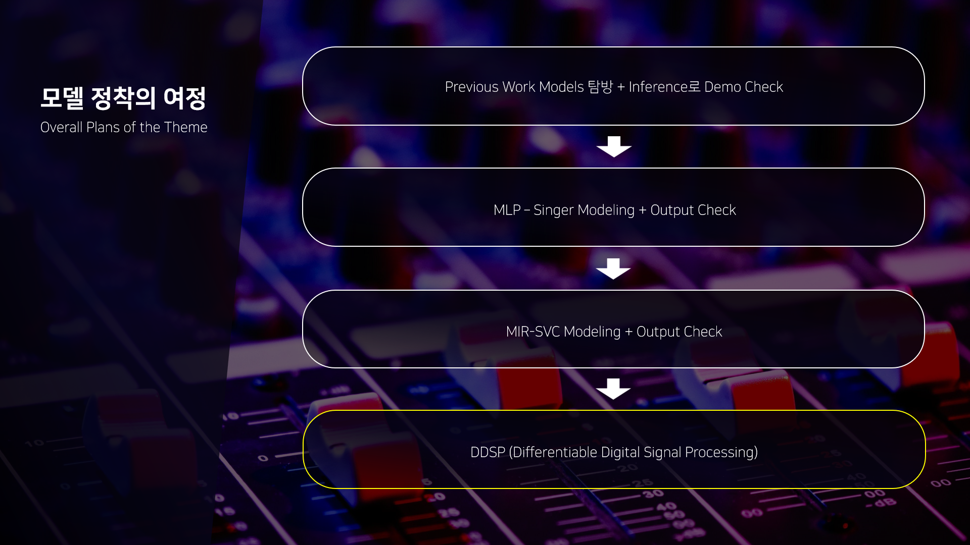 - 위 과정을 통해 준비한 dataset을 통해 MLP를 이용한 MLP-Singer Model, MIR-SVC Model, DDSP module-based Model inference를 통한 Demo를 비교
