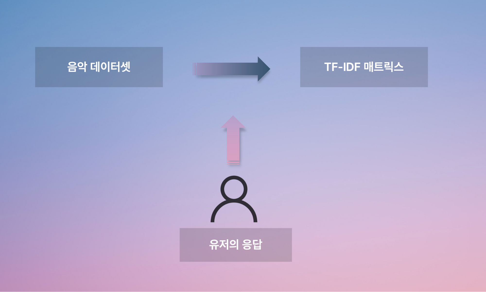 유저에게 추천할 음악 목록을 모아놓은 데이터셋을 기반으로 TF/IDF를 계산하여 이를 tf-idf 매트릭스에 결과로 저장해둔다.
