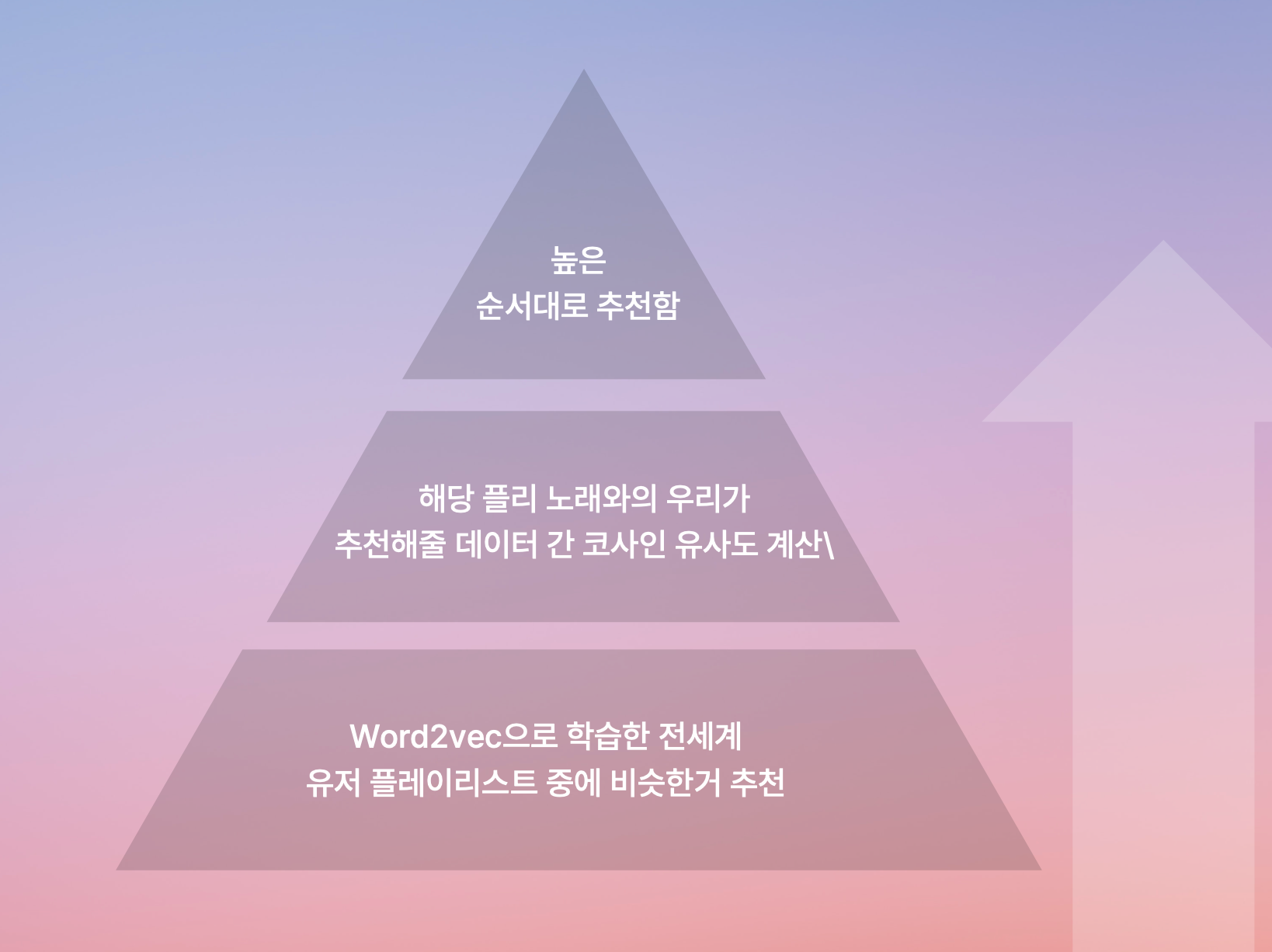 유저에게서 상황이 주어지면, 학습시켜준 플레이리스트 목록에서 상황과 가장 비슷한 플레이리스트들을 고른다.